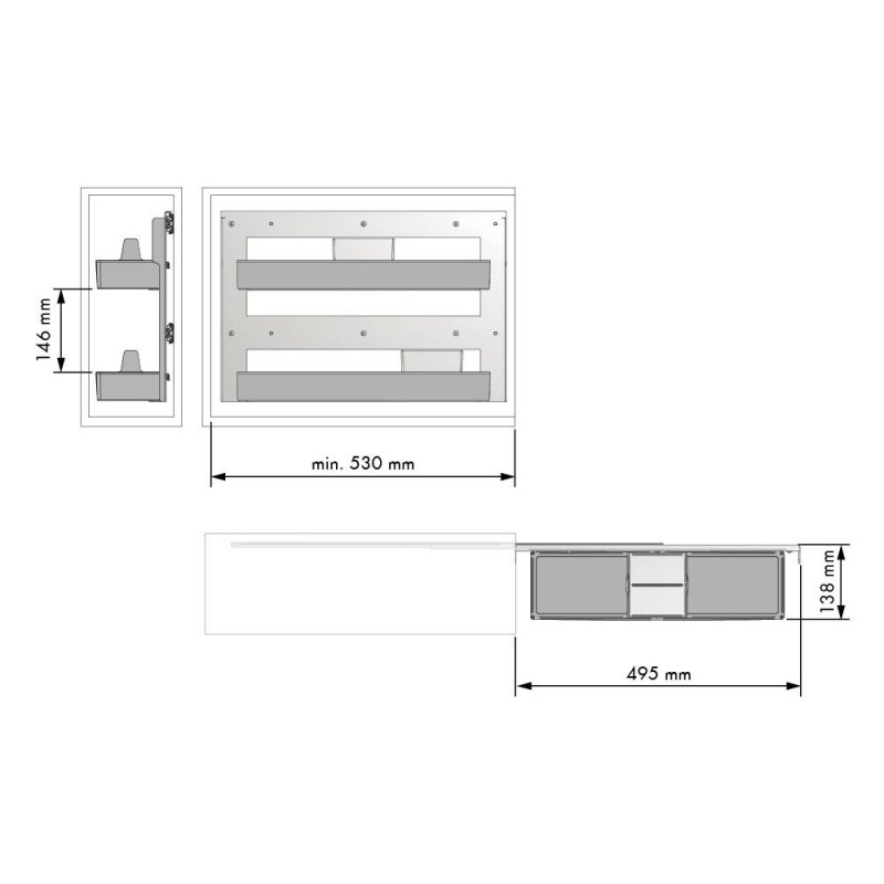 - Convient pour des meubles de 200 mm de largeur extérieure et plus, avec une profondeur minimale de 530 mm