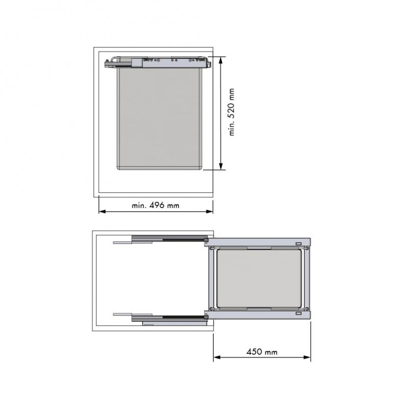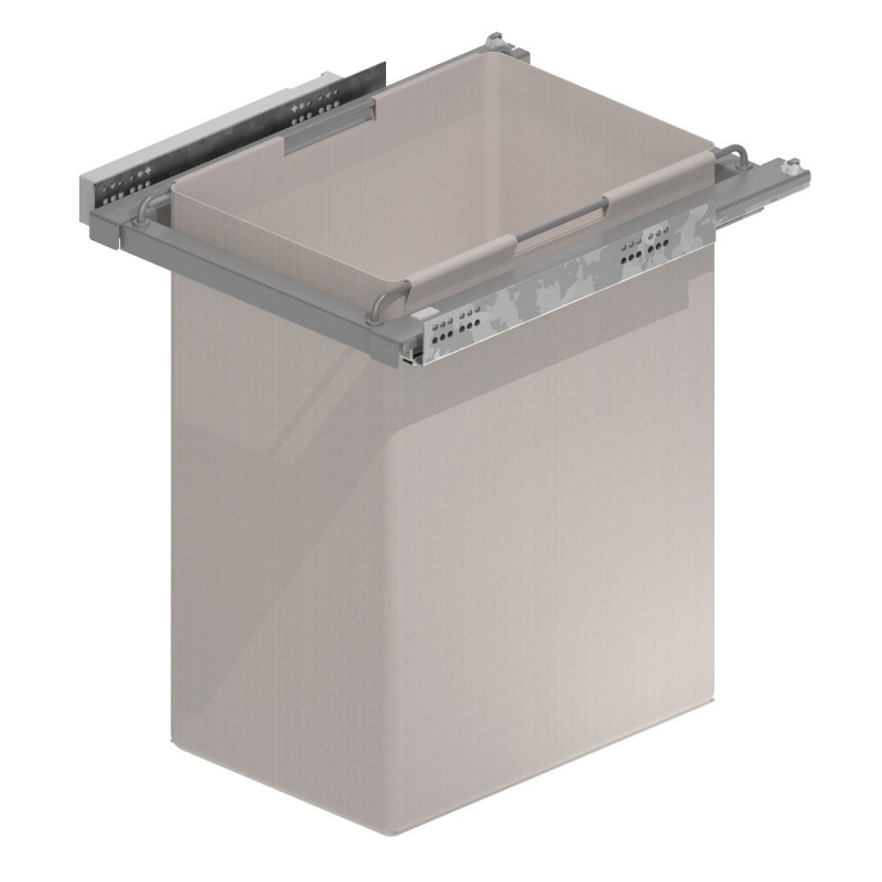 Développez Trémie amovible pour meubles avec paniers, guides Hettich à extraction totale et fermeture douce. Disponible en version simple ou double selon la largeur du meuble.