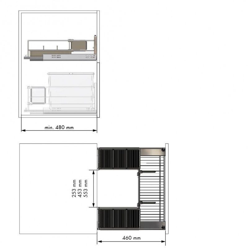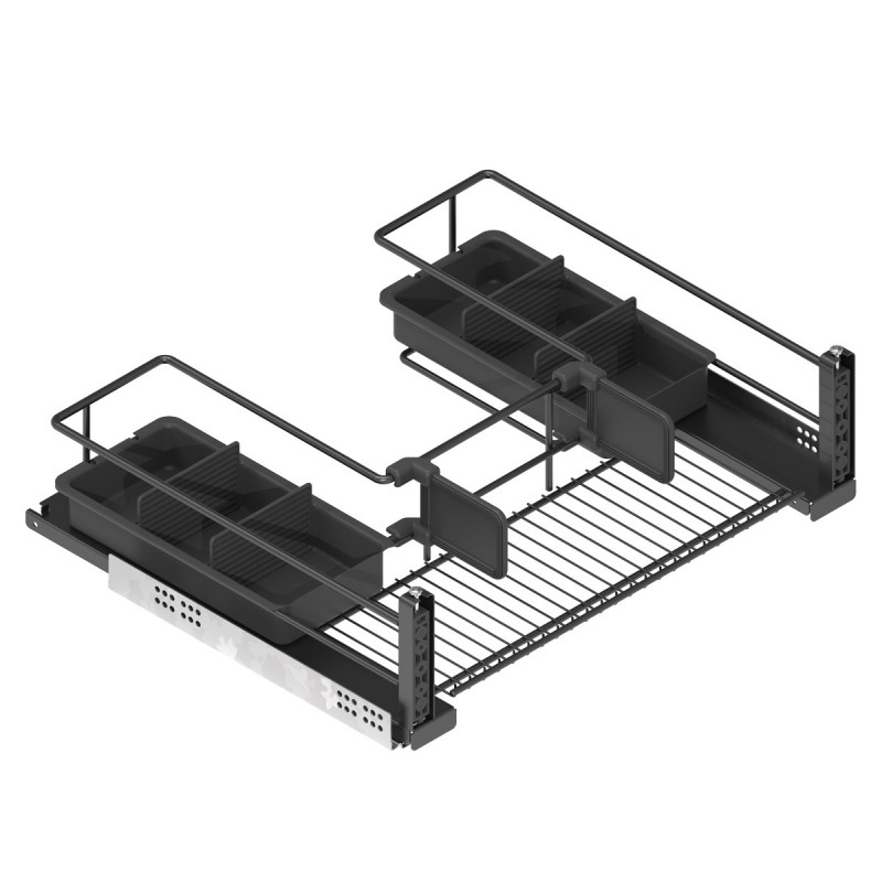 Développez Panier extractible frontal Classic en acier anthracite avec glissières Hettich à extraction totale et fermeture amortie. Supporte jusqu'à 30 kg.