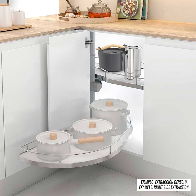 Module amovible pour les meubles de coin cuisine. Double hauteur du plateau pour une meilleure utilisation de l'espace. Chaque tiroir est livré sans se soucier.