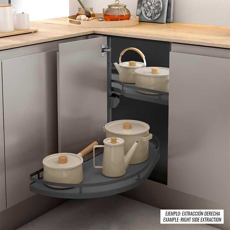 Module amovible pour les meubles de coin cuisine. Double de la hauteur des plateaux pour une meilleure utilisation de l'espace. Chaque tiroir est livré sans se soucier.
