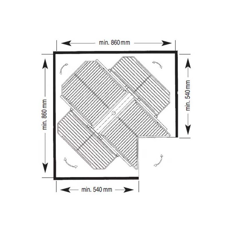 Développez Cadre pivotant amovible pour meuble d'angle en forme de L en acier chromé avec 4 paniers (2 paniers amovibles et 2 paniers fixes).