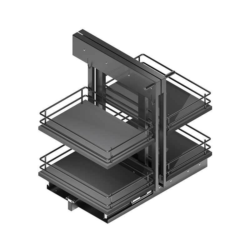 Développez Amovible articulé finition anthracite pour meubles d'angle de cuisine, avec 4 paniers avec une base de mélamine, l'extraction total et système soft-fermeture.