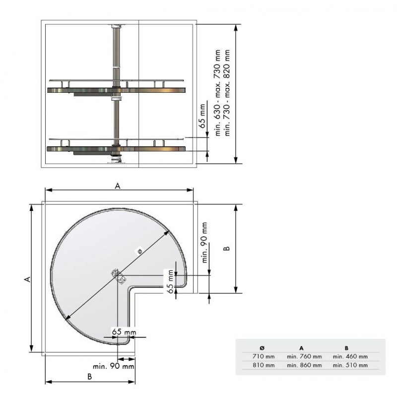 Développez Extractible pivotant Compact pour coin de cuisine avec double plateau et bases en mélamine anthracite. Supporte jusqu'à 20 kg par plateau.