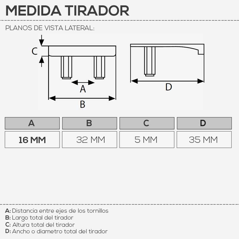 Poignée en Zamak pour les armoires de cuisine, tiroirs, les meubles et le mobilier en général.