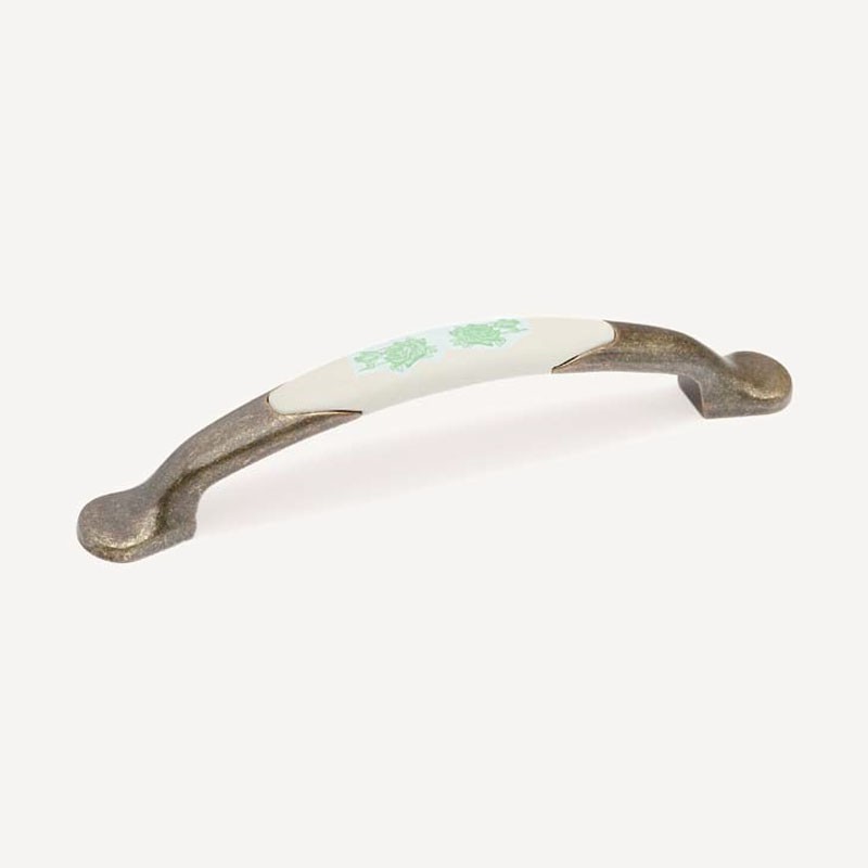 Développez Poignée pour les armoires de cuisine de style rustique en bronze oxyde avec motif floral dans des couleurs différentes. Comprend les vis pour le montage.