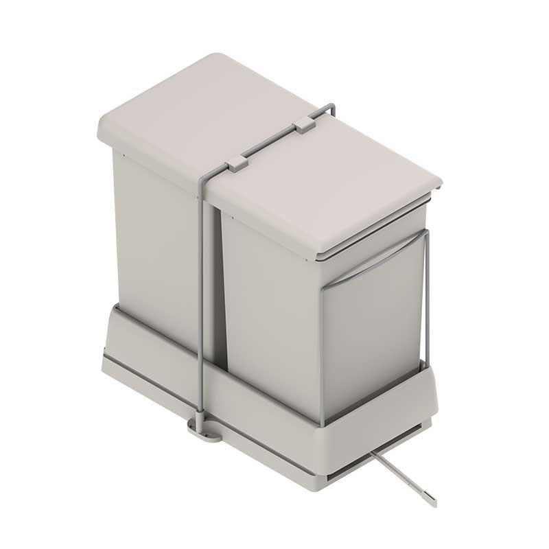 Développez Poubelle double bac avec de forme rectangulaire, fabriqué en polypropylène beige, avec une capacité totale de 28 litres (14 + 14 litres).