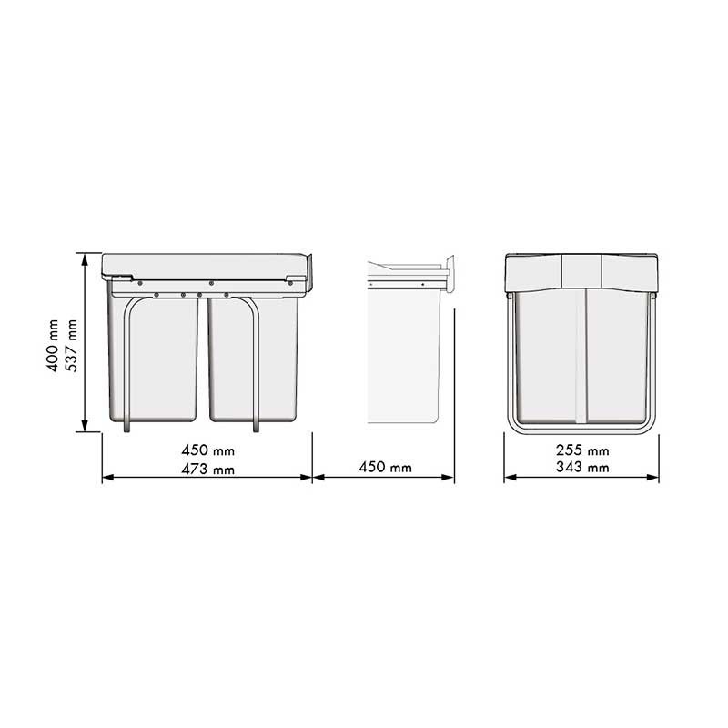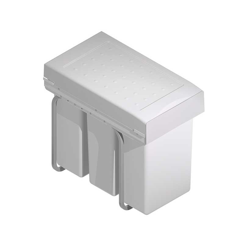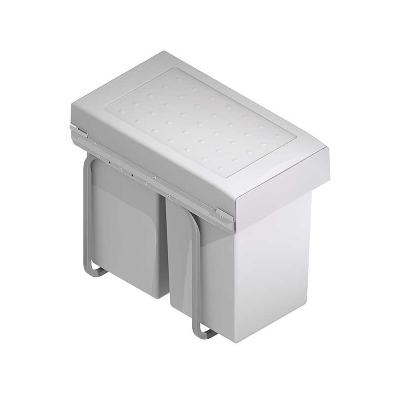 Développez Bac de recyclage des ordures faite de polypropylène gris avec des guides en métal à installer à l'intérieur d'un placard de cuisine.