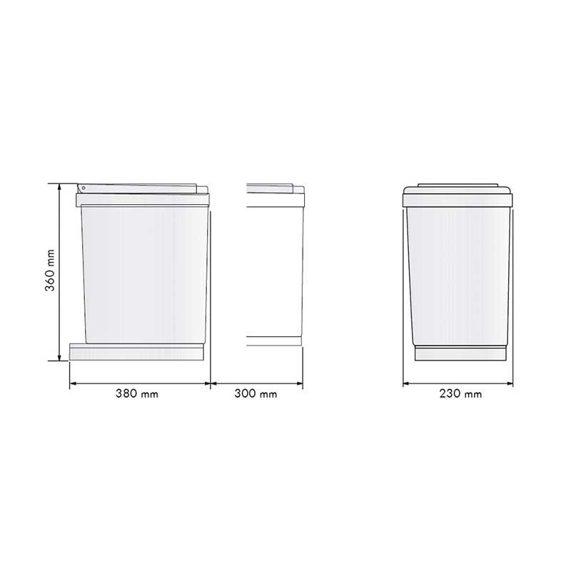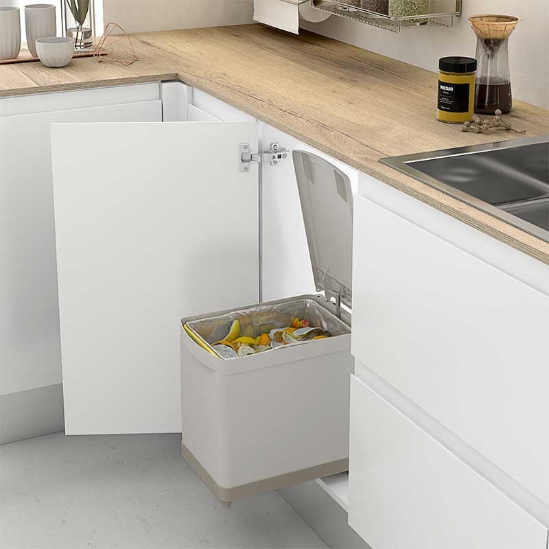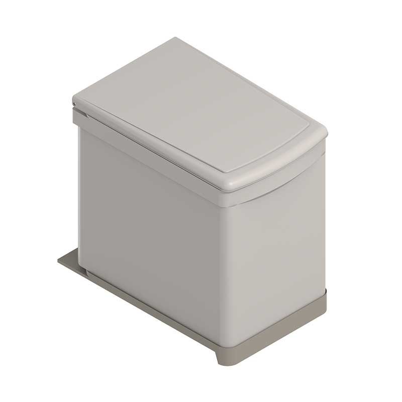 Développez Corbeille rectangulaire fabriqué en polypropylène beige, avec une capacité de 16 litres, manuel de l'enlèvement et de l'ouverture du couvercle.