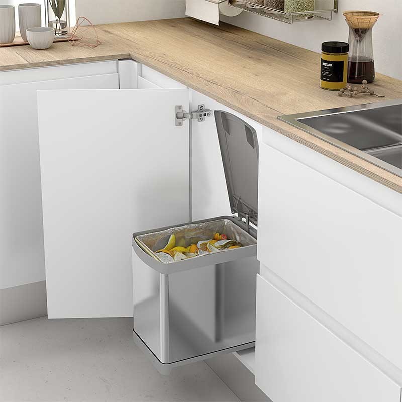 Développez Poubelle écologique rectangulaire en acier inoxydable, avec une capacité de 16 litres. Manuel de l'enlèvement et de l'ouverture du couvercle.