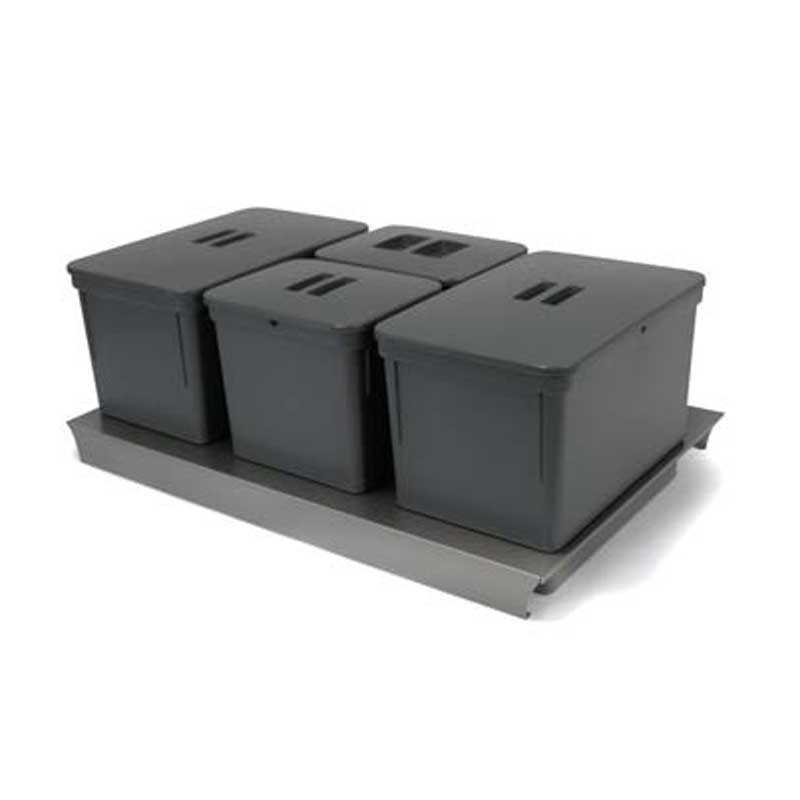 Développez Kit poubelle série 4 avec base en acier inoxydable et bacs ABS gris foncé de grande capacité.