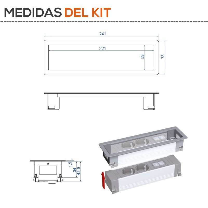 POWER FRAME est une solution compacte qui offre une solution simple et intégrée dans notre cuisine de plusieurs points de vente. Ses petites dimensions combinée avec une haute qualité et le design nous permet de nous installer à la fois intégré dans le plan de travail comme dans un tiroir ou une armoire de cuisine.