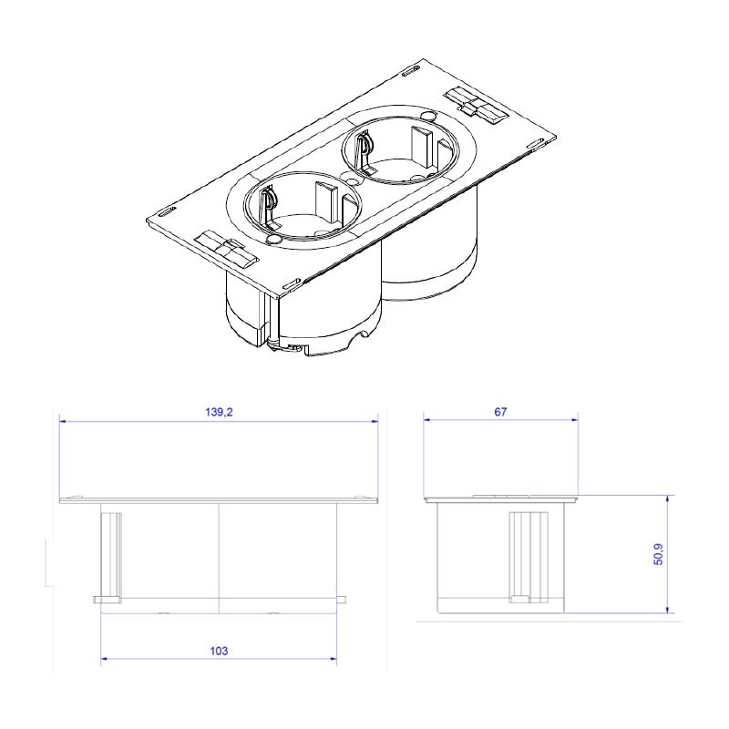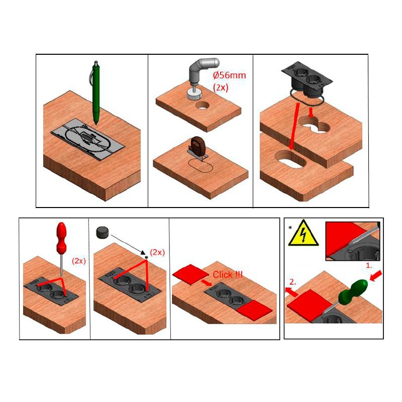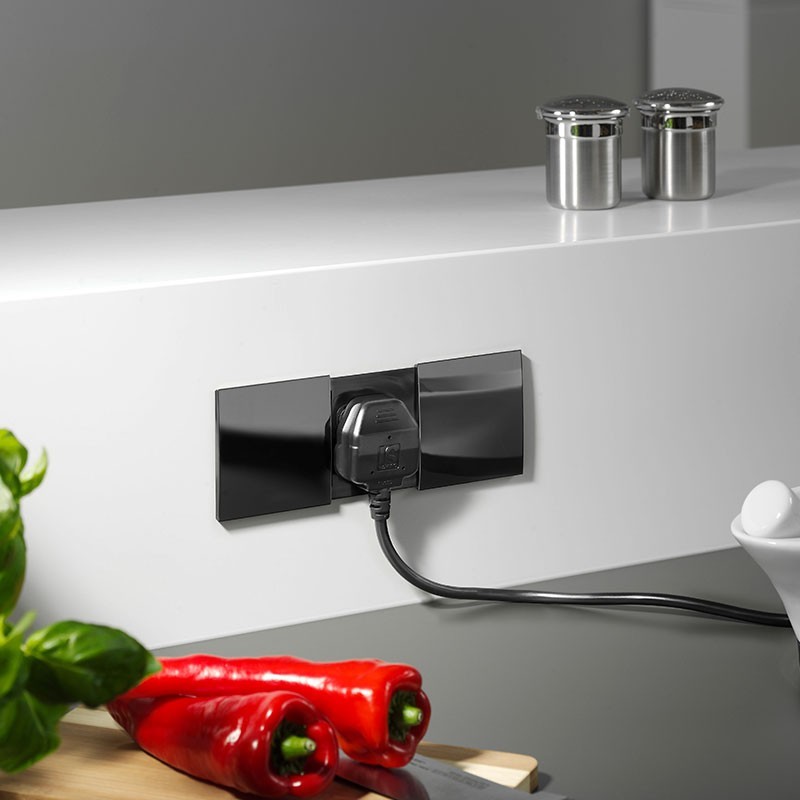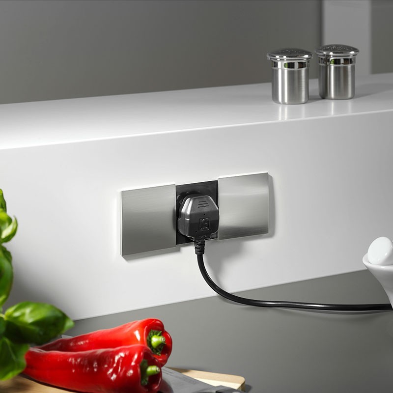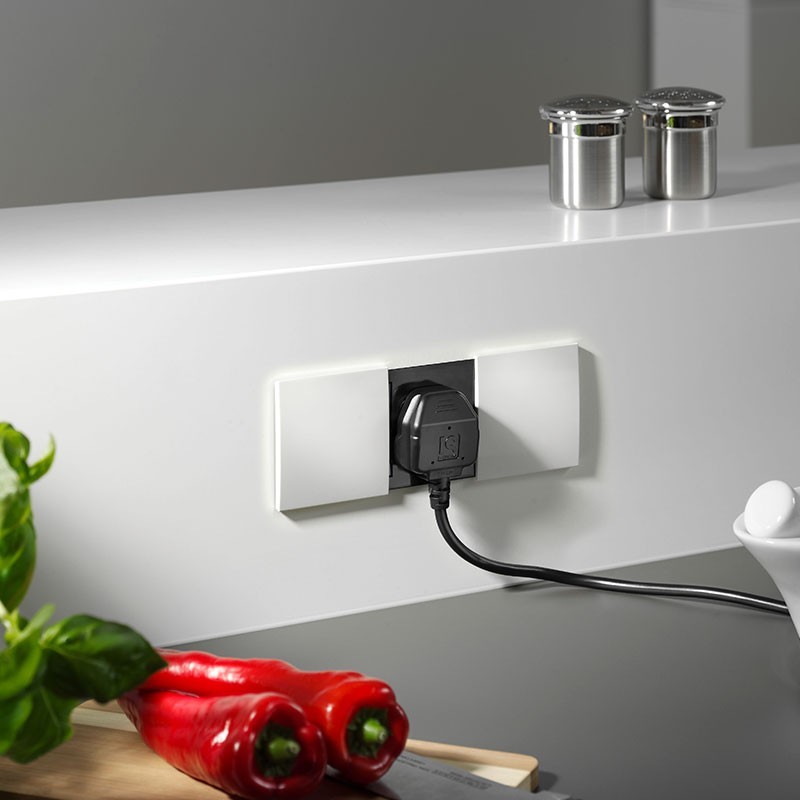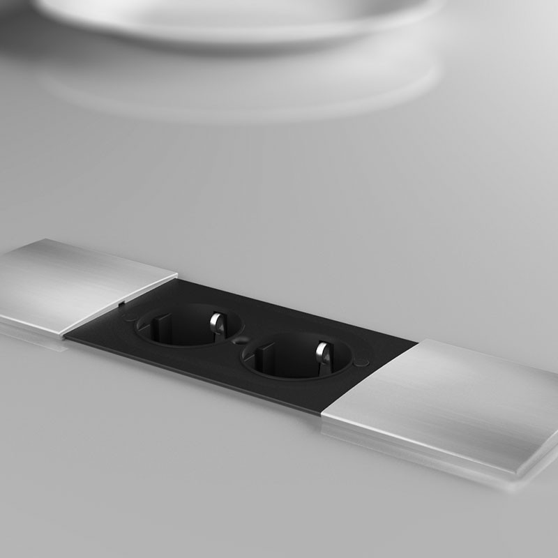 Développez Bande de puissance en bande horizontale de cuisine à l'ajustement du modèle Sed avec 2 coups de rouge Schuko cachés derrière des 2 ponts à glissement.