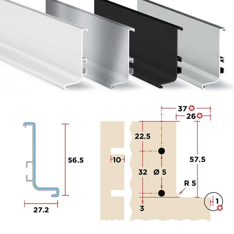 Le profil supérieur du système gola est installé là où les tiroirs ou les armoires de cuisine se terminent, toujours sur le côté supérieur ou final des armoires, jamais entre eux.
