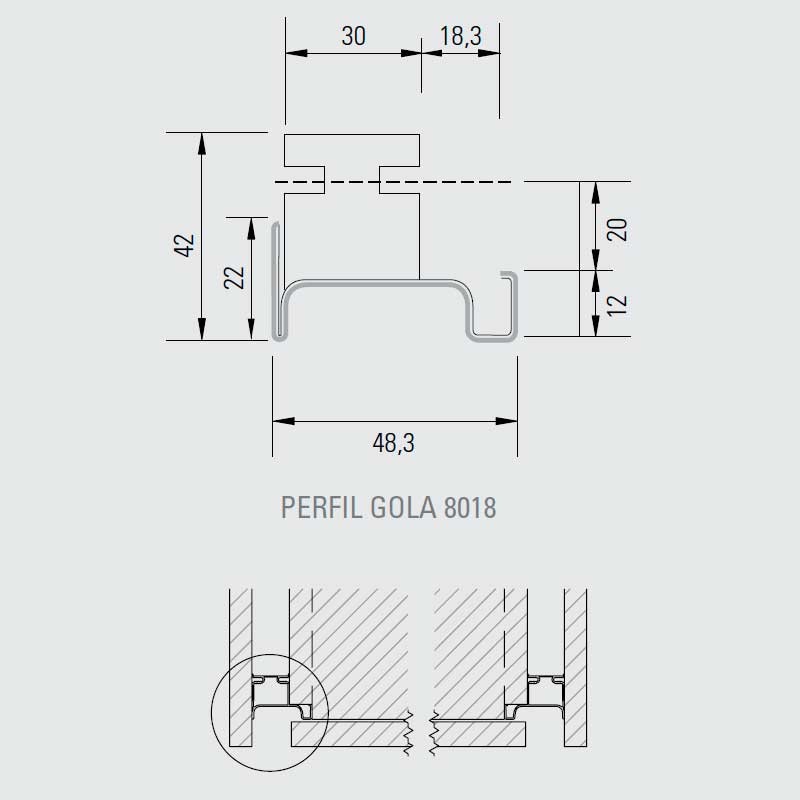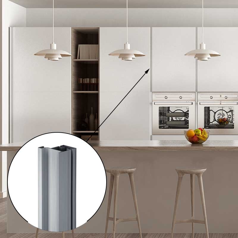 Ce profil gola est installé à la verticale du meuble permettant de tirer le bord de la porte pour l'ouverture.