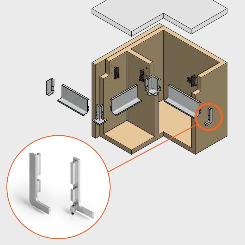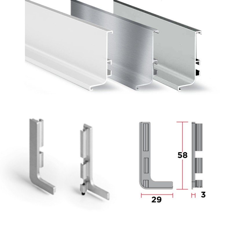 Développez Couvercles pour la finition des profils de système de gola horizontal en haut. Compatible avec tous les gola haut réf.8006. De multiples finitions.