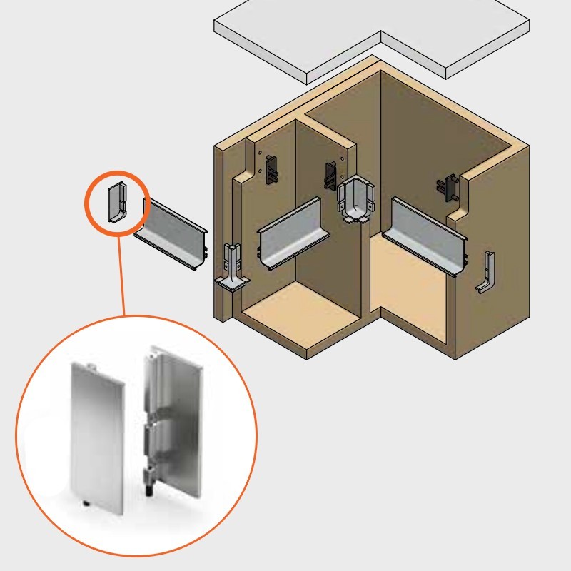 Le système de profil gola haut est installé où la fin des tiroirs ou des armoires, toujours sur le haut ou le bas de la côte, placards, jamais entre eux.