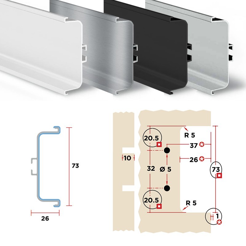 Développez Profil gola pour système d'ouverture sans poignée pour meubles de cuisine. Le profil est presque caché, au niveau de l'armoire, derrière la porte ou de tiroir.