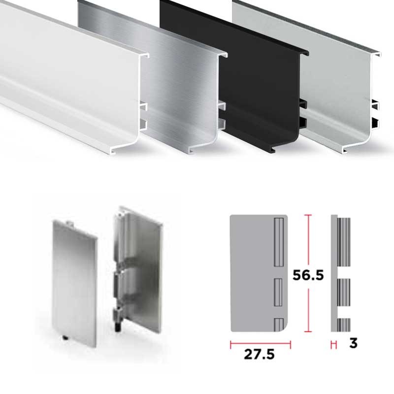 Développez Couvercles finales fermés pour profils de système de gola horizontal en haut. Valable pour tous les gola haut réf.8006. Multiples finitions.