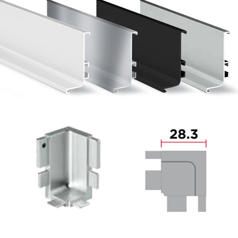 Développez L'angle interne de l'union de 90 ° de profils de système de gola cuisine. Compatible avec gola réf.8006. Fabriqué en aluminium en différentes finitions au choix.