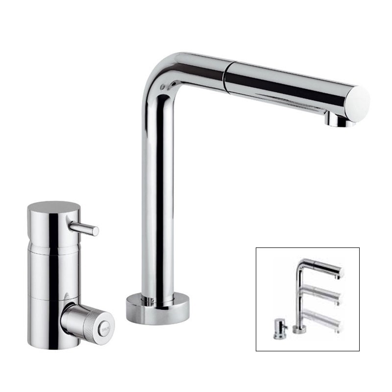 Développez Robinet de cuisine de modèle Pur Idéal-type de table de mixage, osmose, bec verseur amovible, escamotable et design italien, en acier inoxydable, finition chrome brillant.