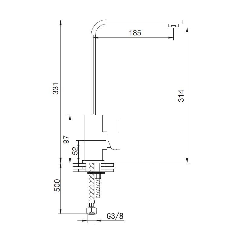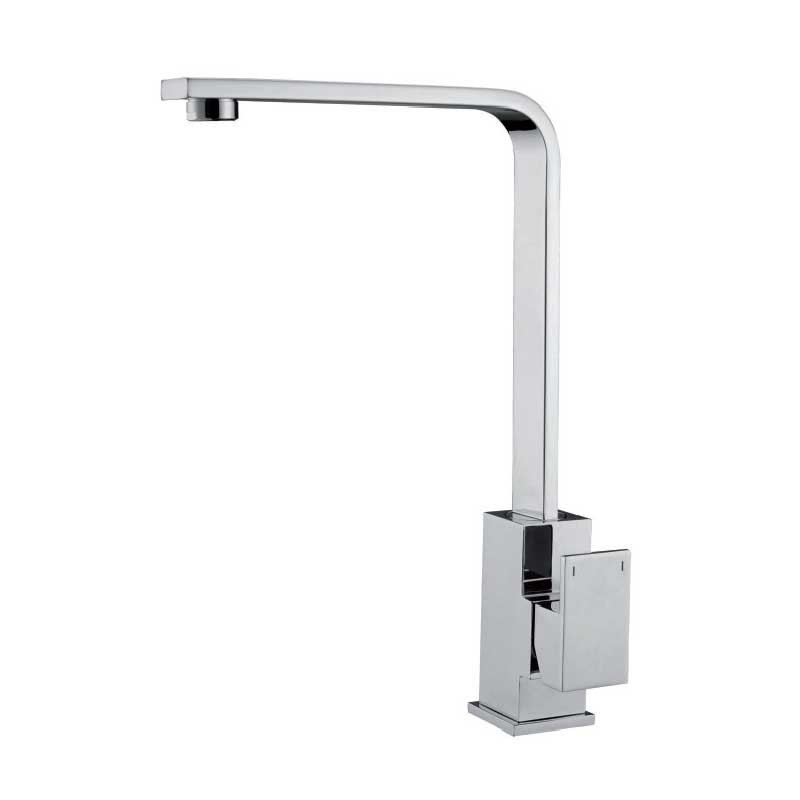 Poignée simple robinet de modèle Lune de 33,1 cm de hauteur et fini en chrome pour évier de cuisine. Cartouche en céramique 35 mm montage vertical sur le plateau.