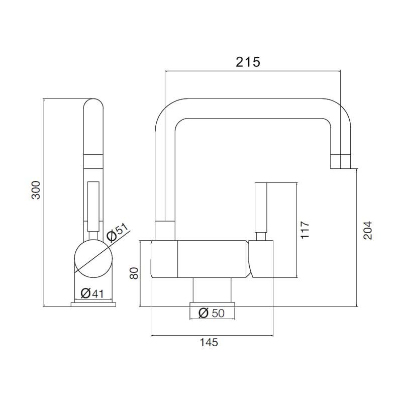 Poignée unique robinet avec bec verseur, charnières modèle Iris 30 cm de hauteur et fini en chrome pour évier de cuisine. Cartouche céramique de 40 mm montage vertical sur le plateau.