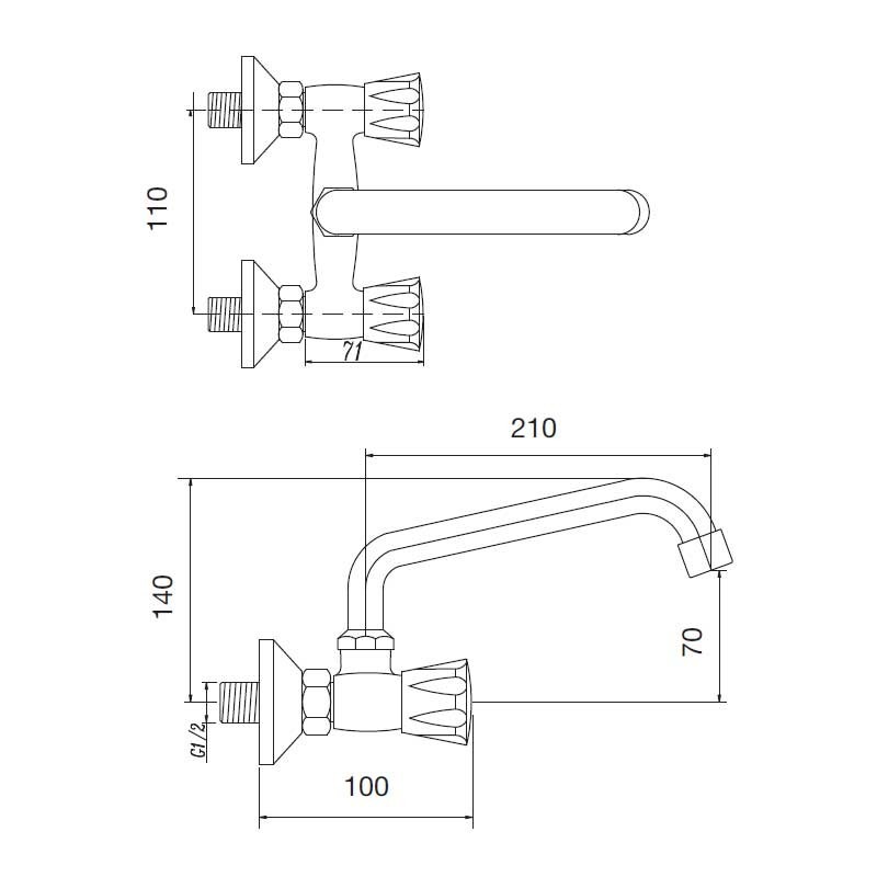Robinet bimando de montage de la céramique modèle Aida fini en chrome pour évier de cuisine. La conception de type murale pour une installation dans le mur. La Distance entre les plans: 11 cm