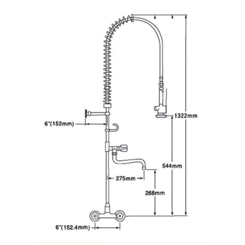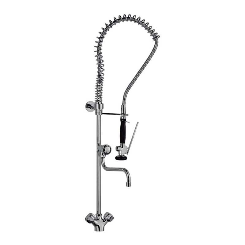Robinet bimando avec douche, bec verseur avec le printemps et le robinet accessoire modèle Industriel 132,2 cm de hauteur et la finition de chrome pour les éviers de cuisines industrielles. Cartouche en céramique 35 mm montage vertical sur le plateau.