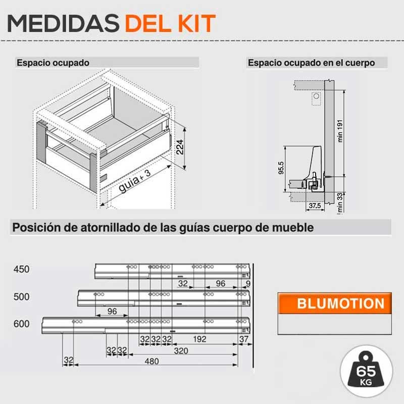 Important: le tiroir complet avec la base de mélamine est prêt à être installés dans des meubles de 16 mm d'épaisseur.