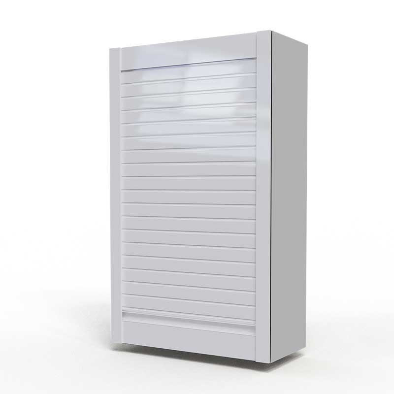 Développez Aveugle en kit pour armoires de cuisine en lattes de 40 mm de verre trempé fini blanc brillant et de 4 mm d'épaisseur avec profilés en aluminium blanc brillant.